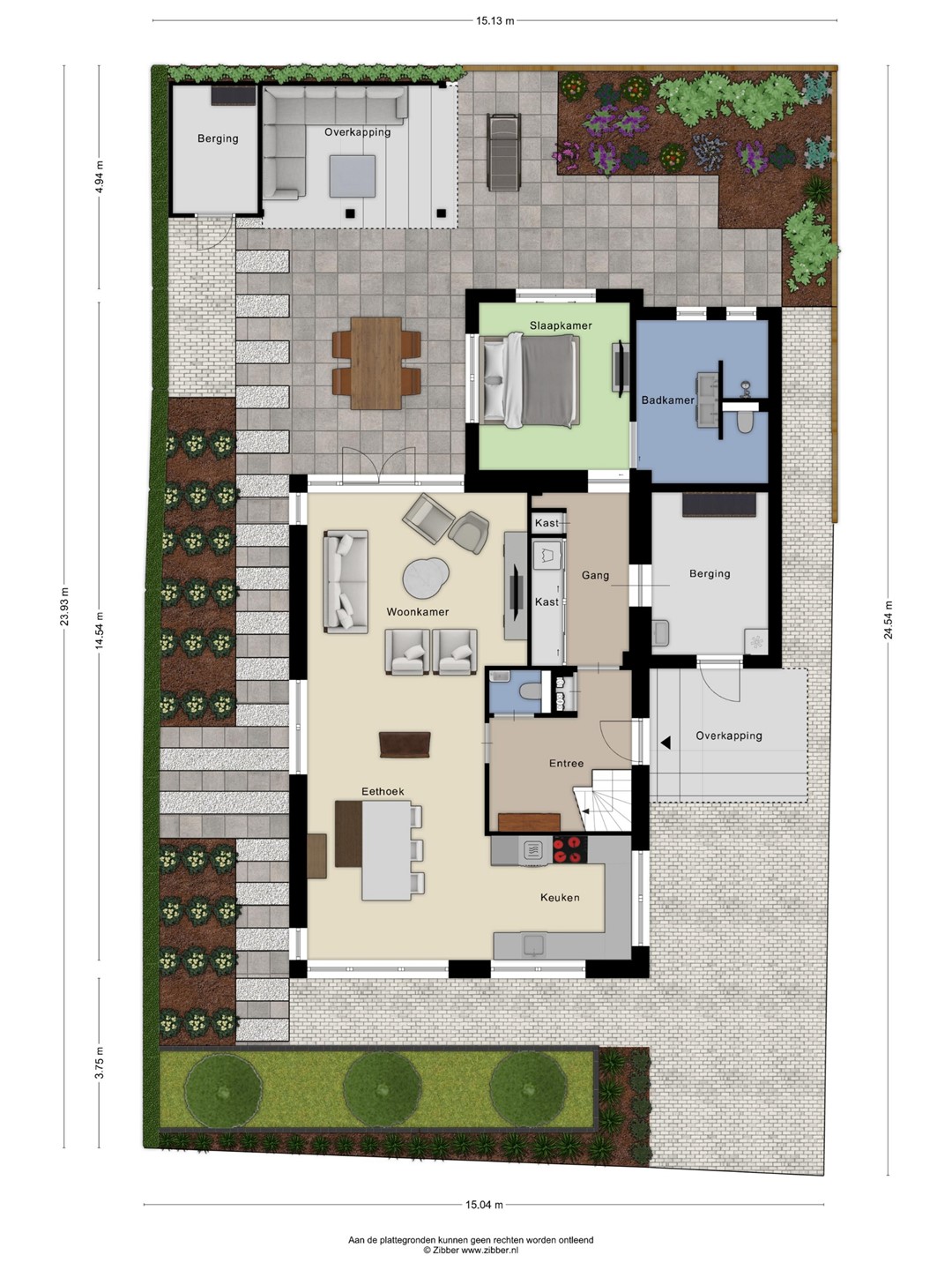 Overdekte entree, toilet, bijkeuken, slaapkamer, badkamer, hal, woonkamer, keuken