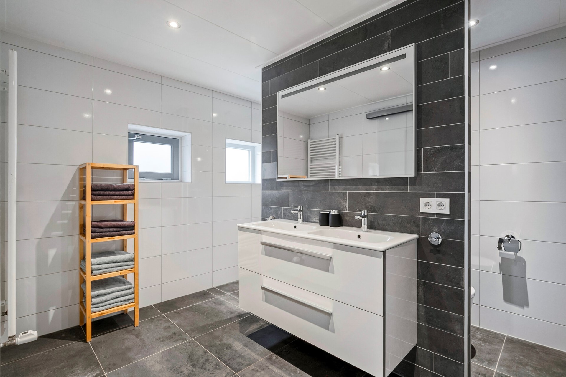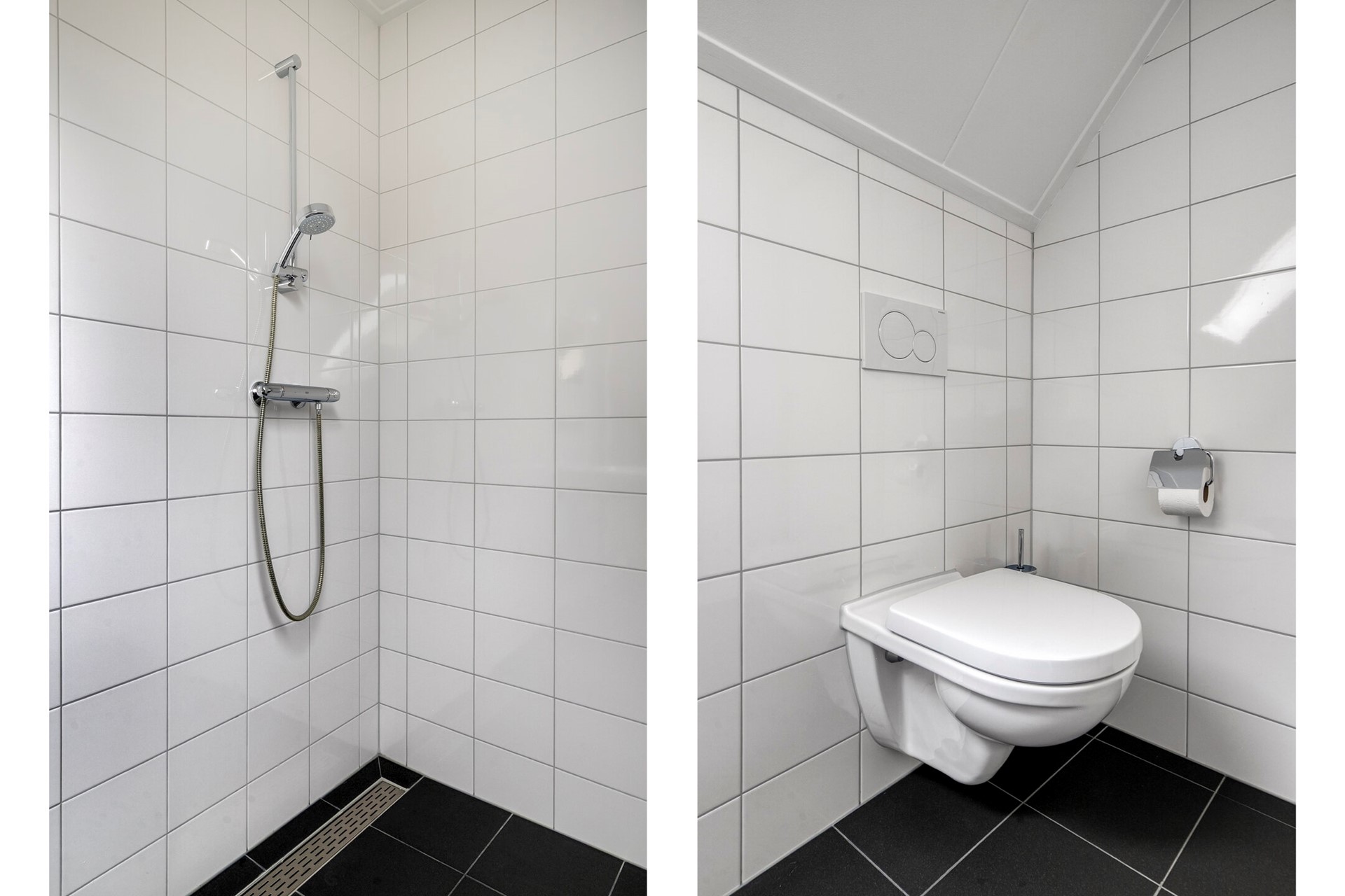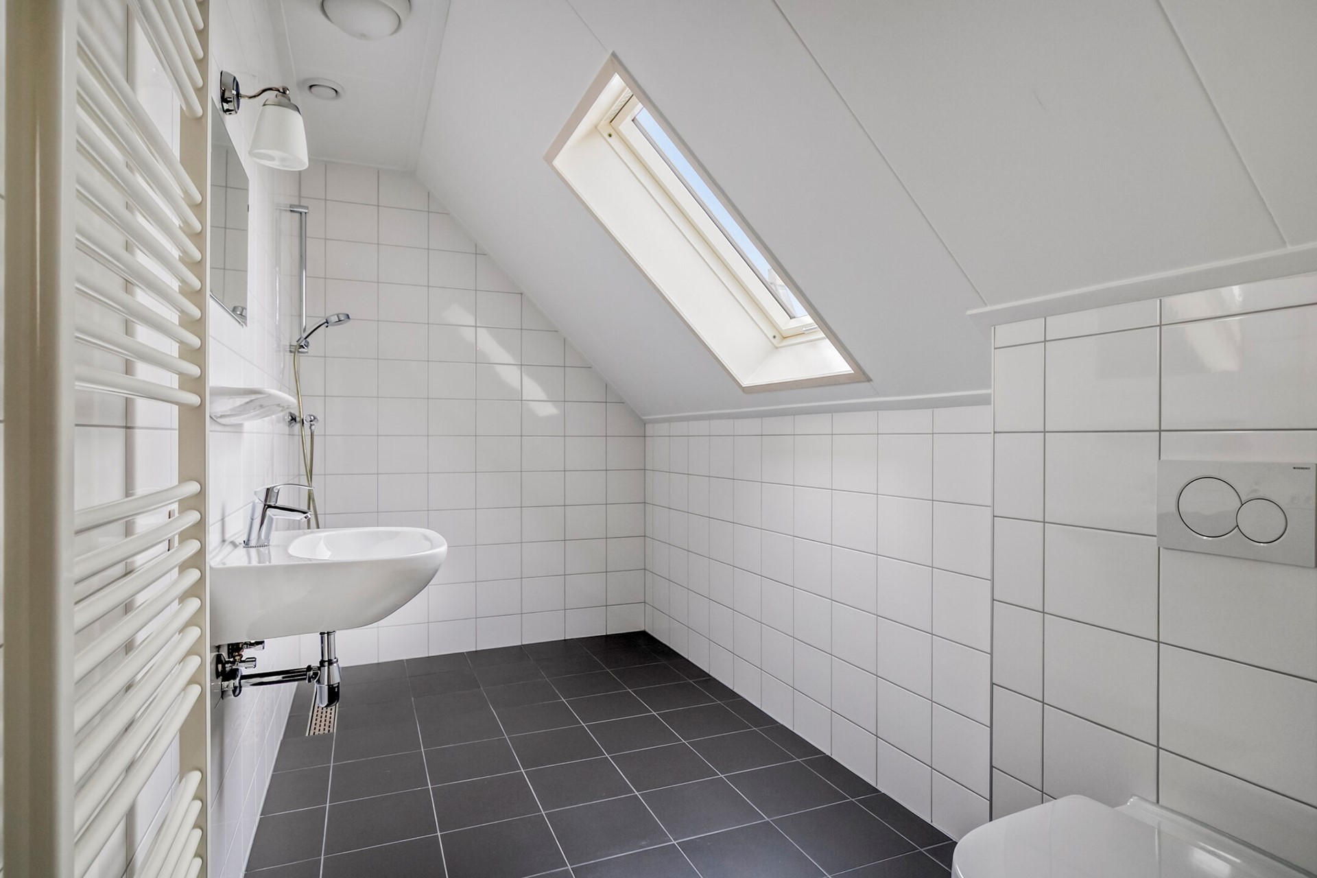 Op de eerste verdieping treffen we de overloop met toegang tot een bergruimte (incl. mechanische ventilatie, CV-ketel), een tweede badkamer en twee slaapkamers. De tweede badkamer is voorzien van een toilet, wastafel en inloopdouche. De twee slaapkamers zijn van goed formaat. Vanaf de overloop is er ook nog toegang middels een vlizotrap tot de vliering.