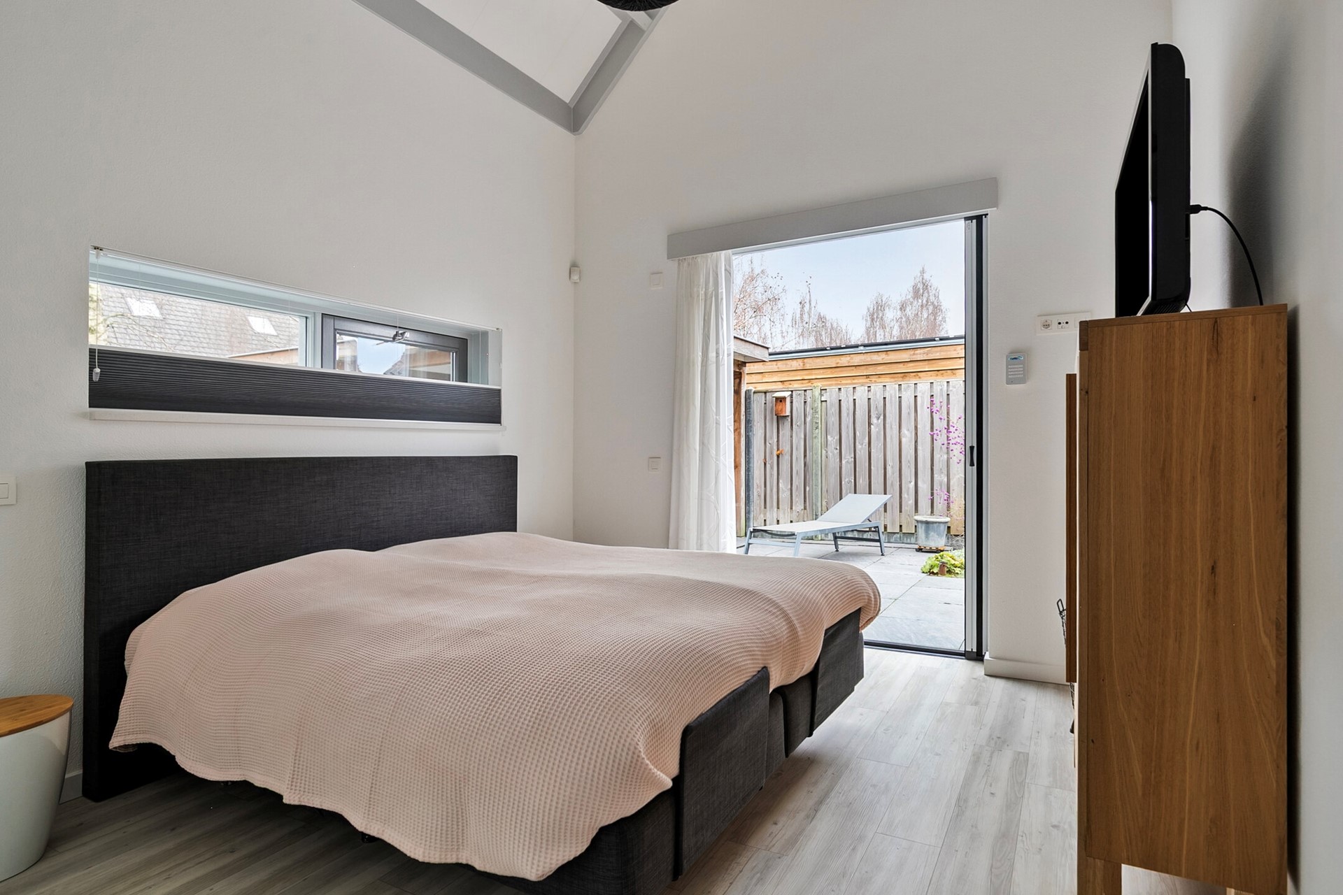 Wij nemen u graag mee door de woning: Via de overdekte entree komen we in de hal met toegang tot de meterkast, de trapopgang en het toilet. Gaan we rechtsaf in de hal, komen we in de bijkeuken / kasten kamer (inclusief witgoedaansluitingen) welk toegang geeft tot de master bedroom, hier is de hoogte behouden wat een zeer leuk en ruimtelijk effect geeft. Vanuit de slaapkamer heeft u toegang tot de badkamer-ensuite. De badkamer is geheel getegeld, voorzien van een inloopdouche, tweede toilet en dubbele wastafel met meubel. Ook treffen we nog een inpandige berging aan deze kant van de woning.
