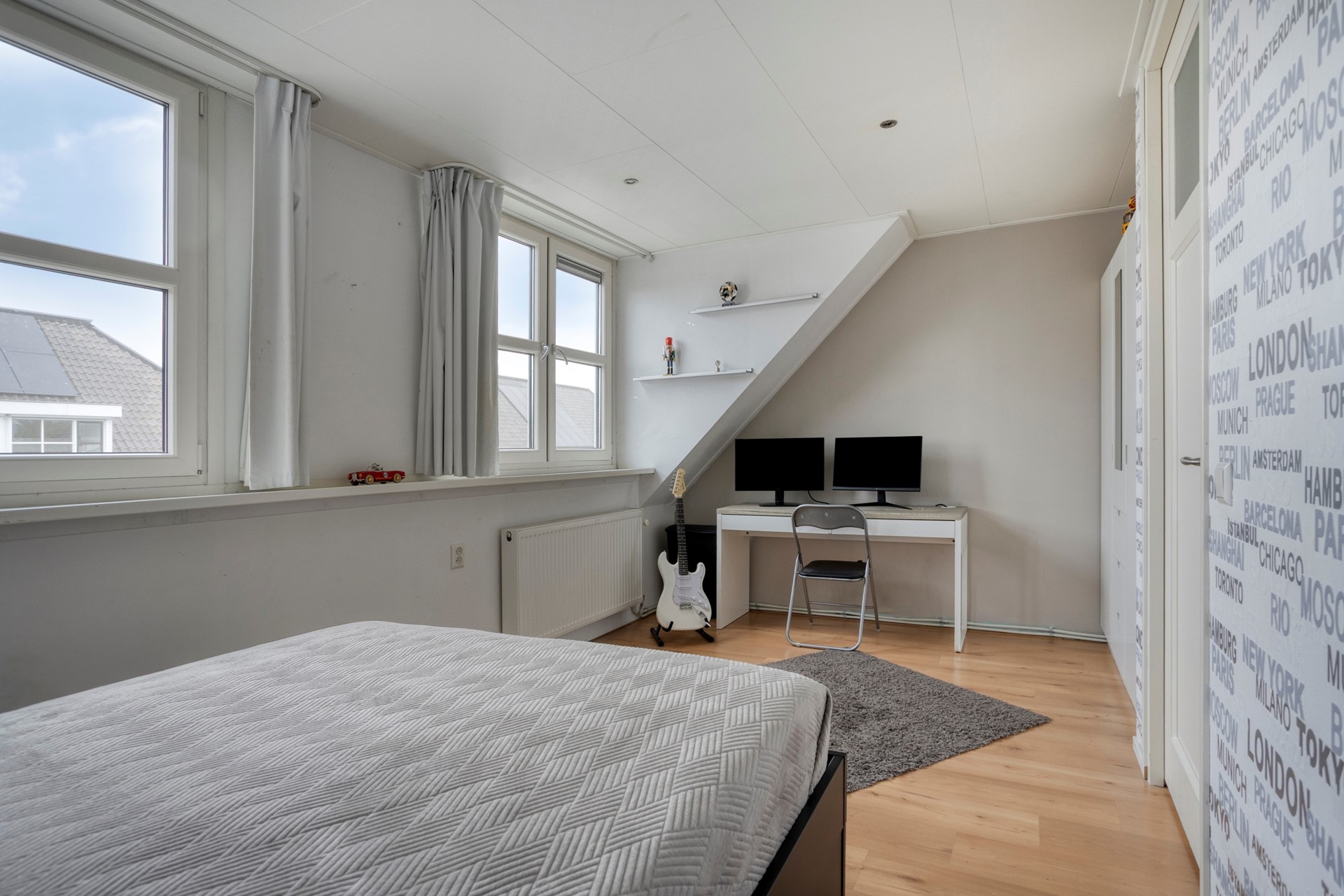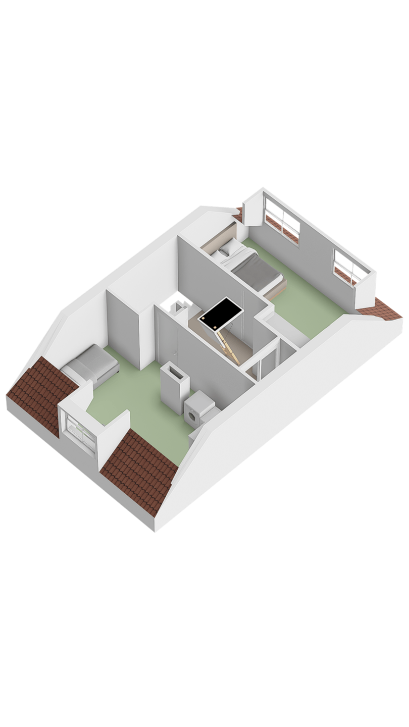 Grote slaapkamer met dakkapel, wasruimte