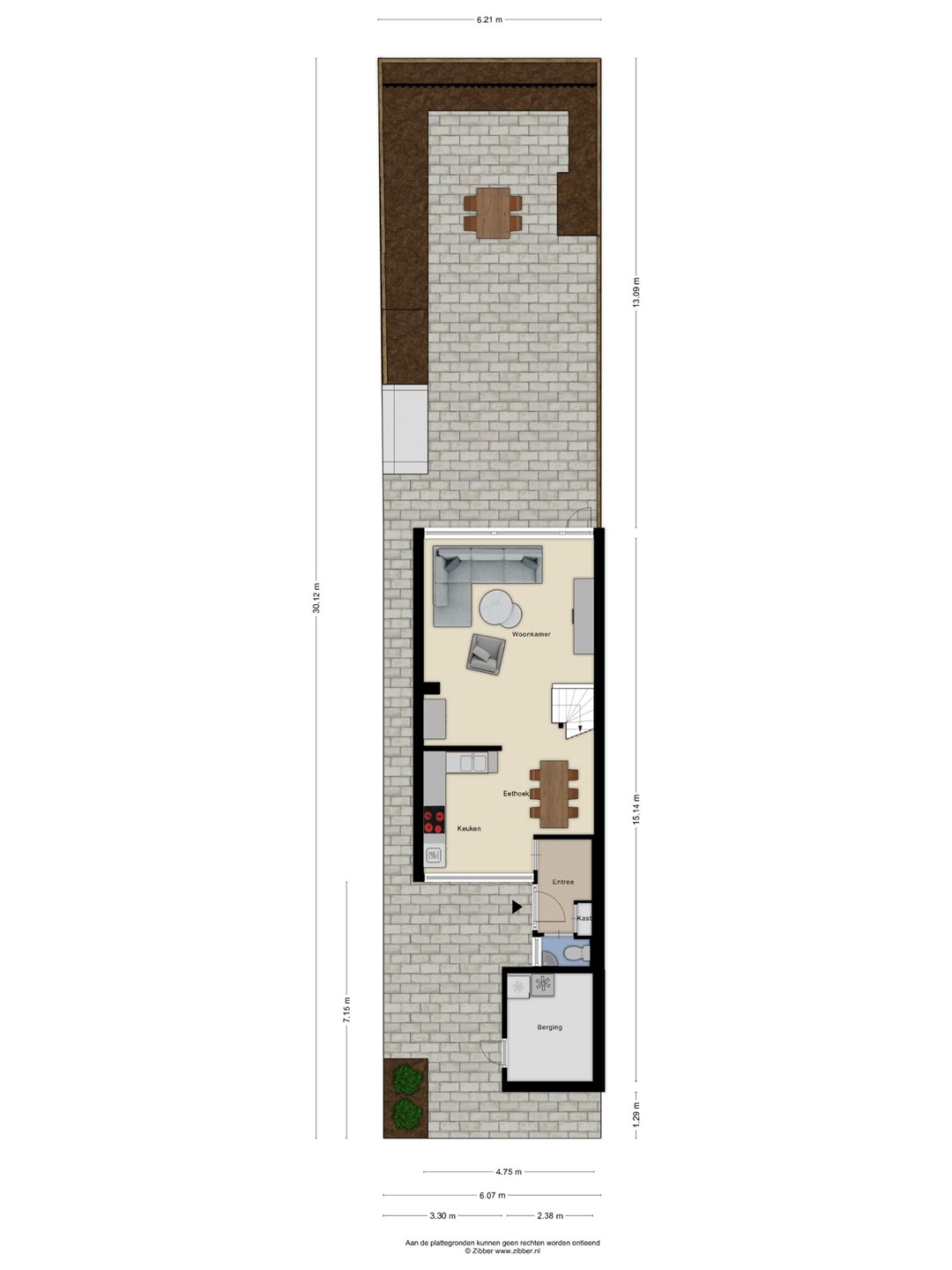Royale tuin op het noorden, heeft een achterom. De berging bevindt zich in de voortuin.