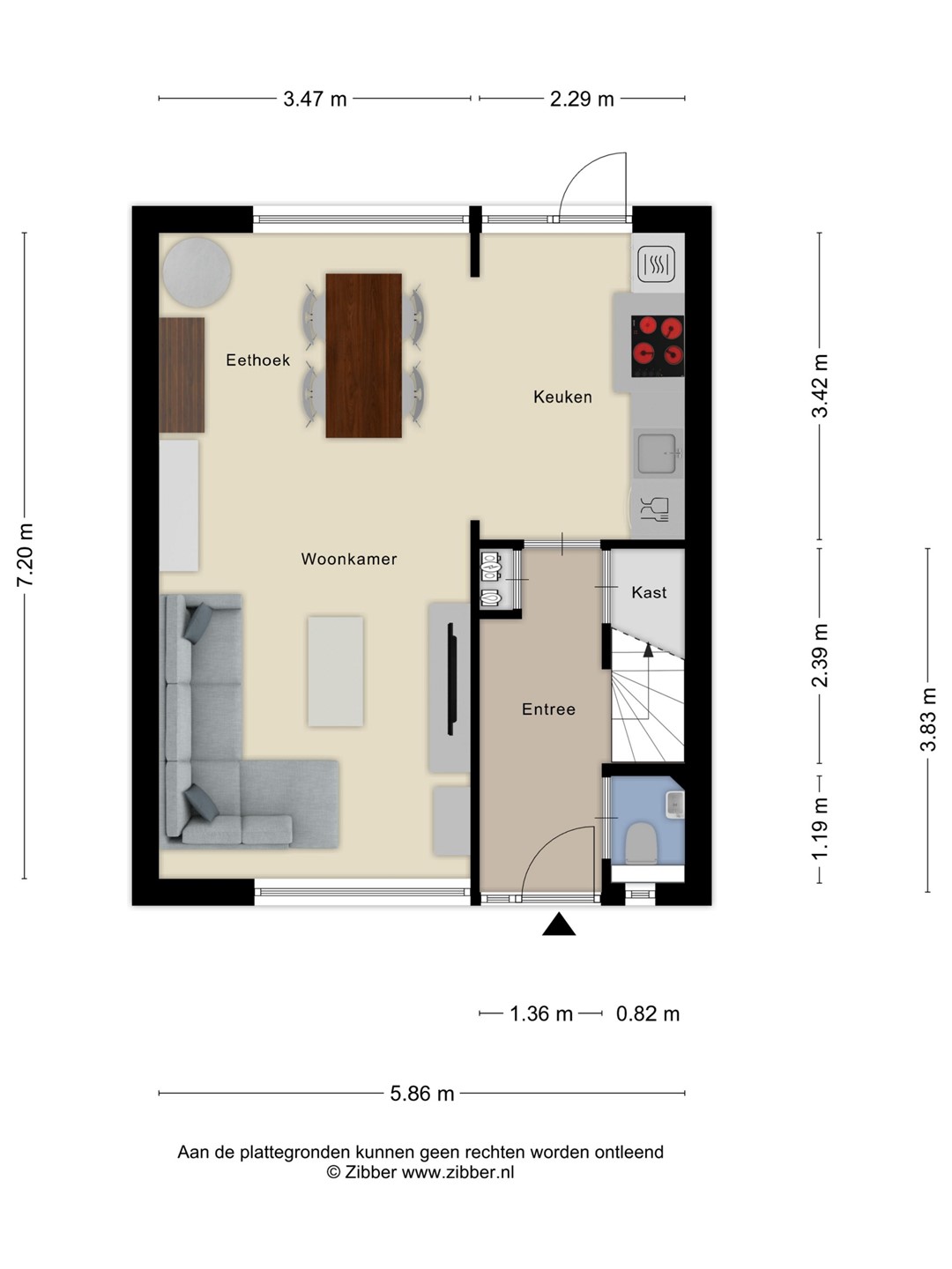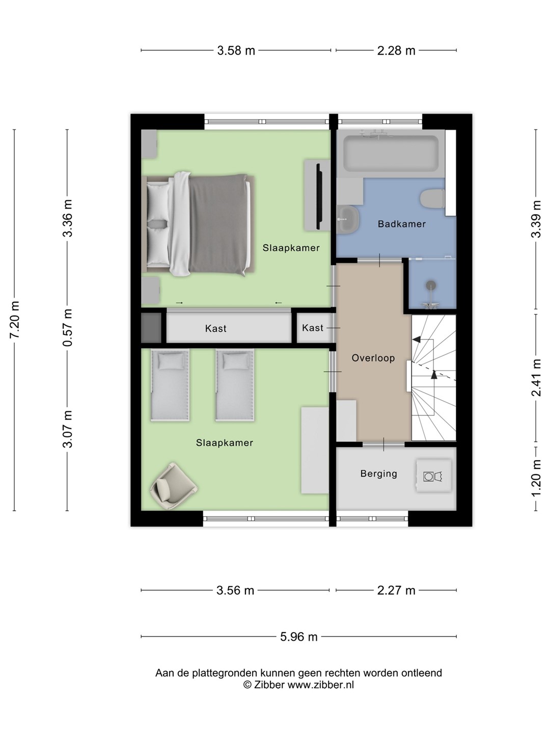 Het woonoppervlak van de zolder mag volgens de NEN 2580 norm niet meegerekend worden. Aangezien de zolder wel als zodanig gebruikt wordt is het vermelde woonoppervlak incl. de zolderverdieping.