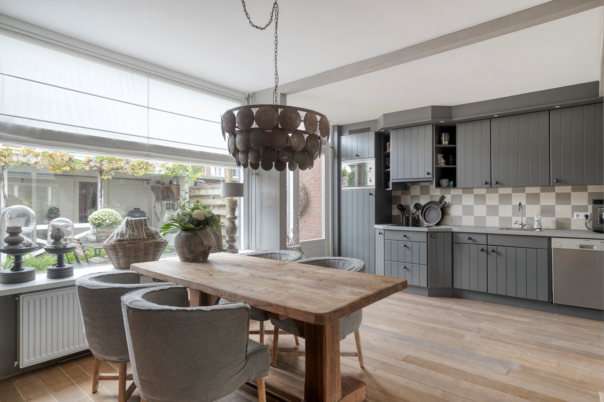 Wij nemen je graag mee door de woning. Via de entree kom je in de hal met toegang tot het moderne toilet, meterkast en toegang naar de keuken. De muur tussen woonkamer en keuken is opengemaakt waardoor er een heerlijke ruimte is ontstaan. Vanuit de keuken en eethoek kijk je lekker de tuin richting de veranda met zijn druiven en gezellige aanblik. De keuken is voorzien van diverse inbouwapparatuur en heeft bergruimte. De woonkamer is aan de straatzijde gelegen en doordat de deur verplaatst is, heb je een lekkere lange wand waardoor je de woonkamer op diverse manier praktisch kunt indelen.