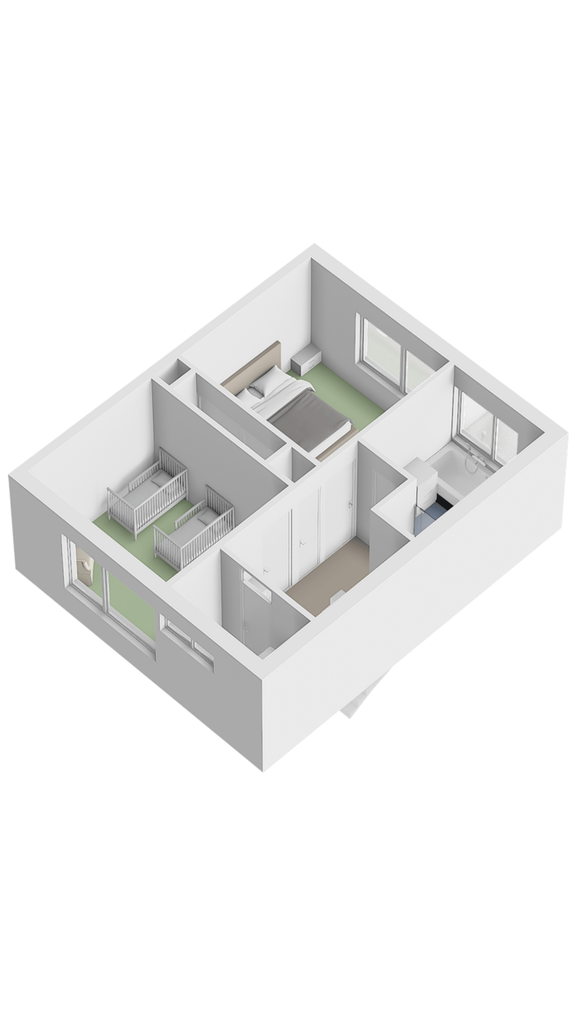 Overloop met vaste kast, 2 grote slaapkamers, badkamer en aparte wasruimte.
