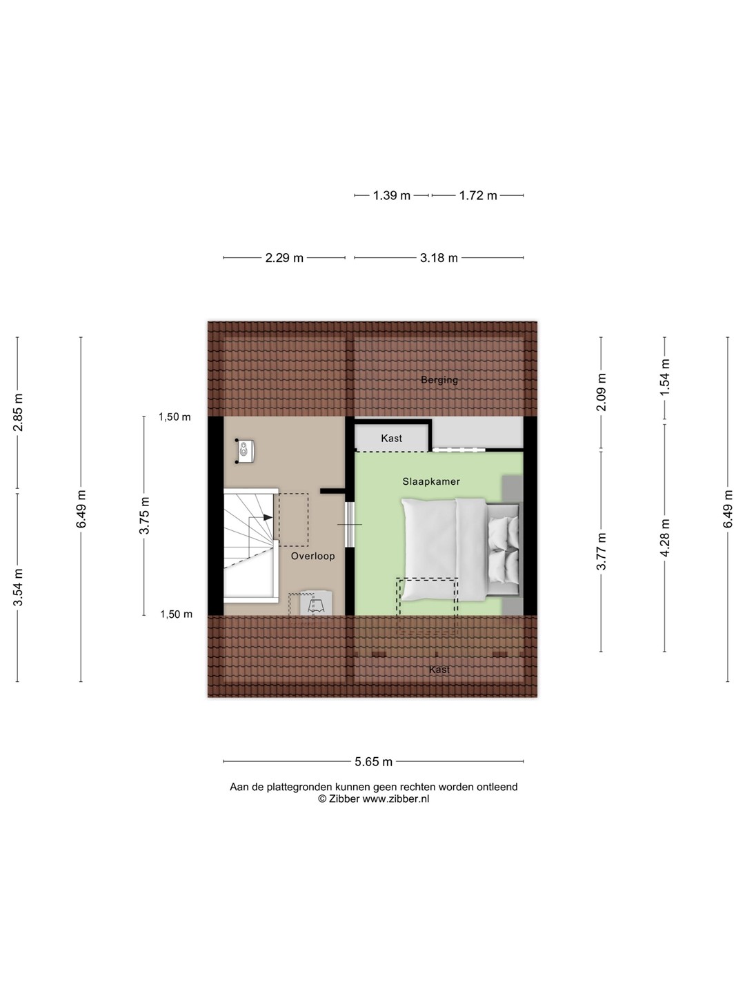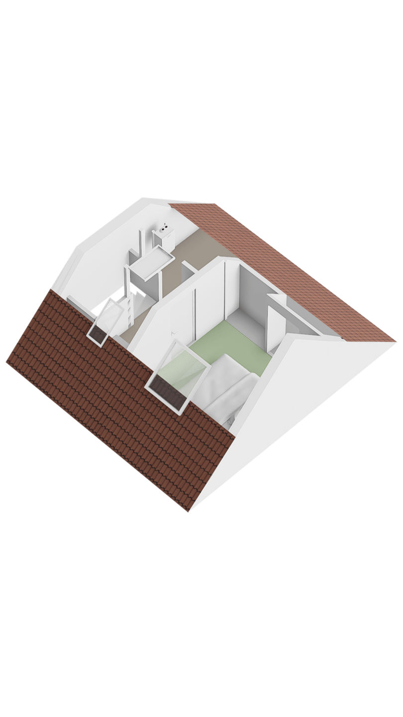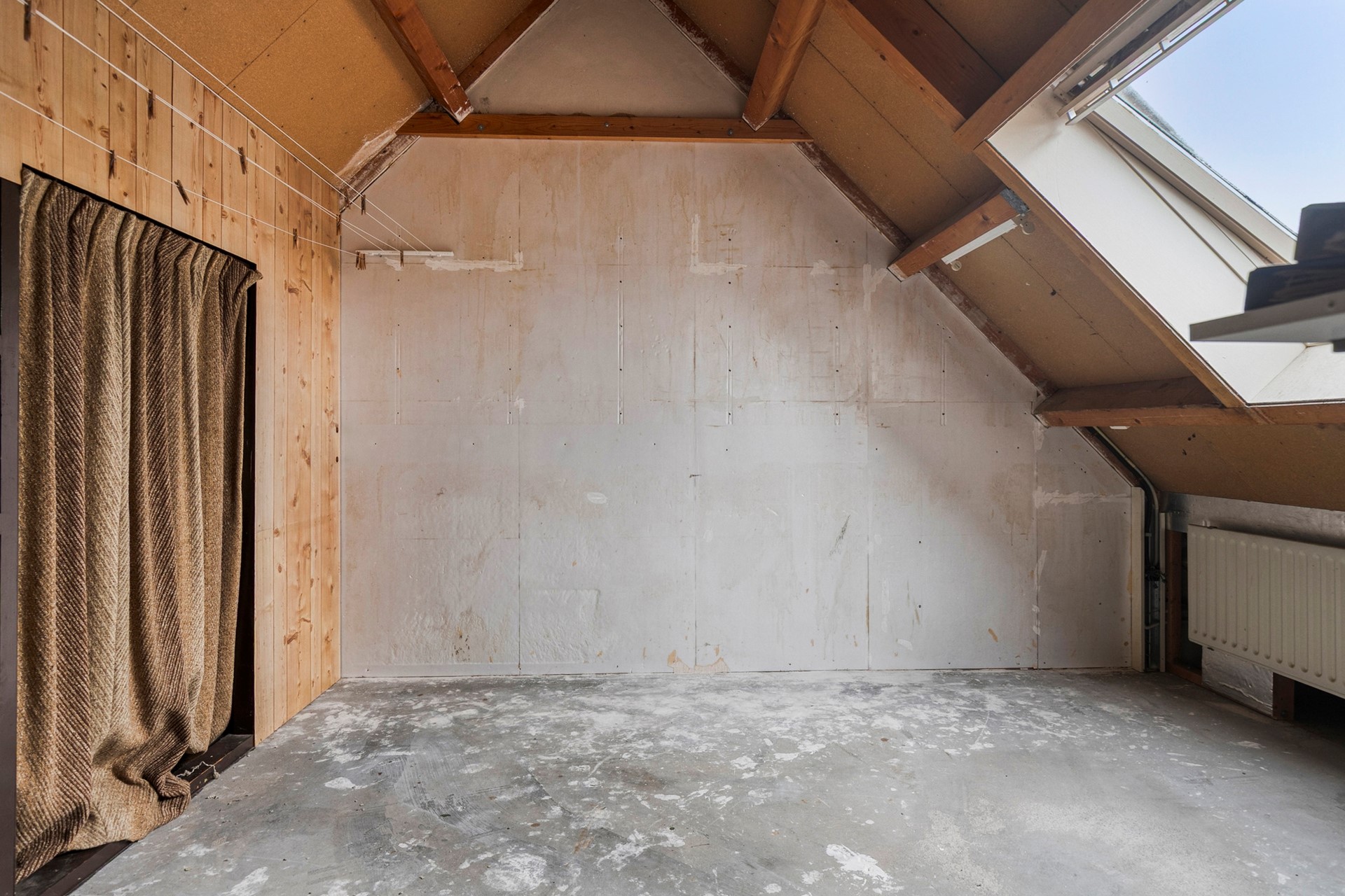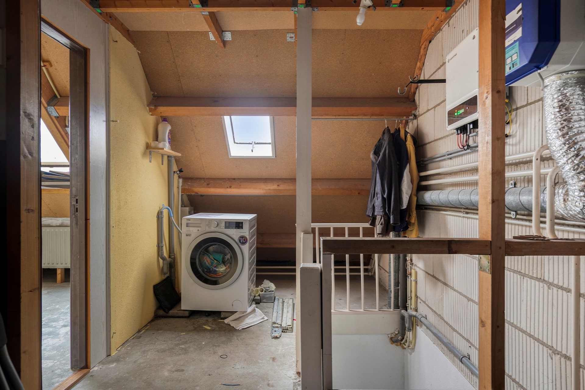 Voorzolder met witgoedaansluitingen, slaapkamer.
